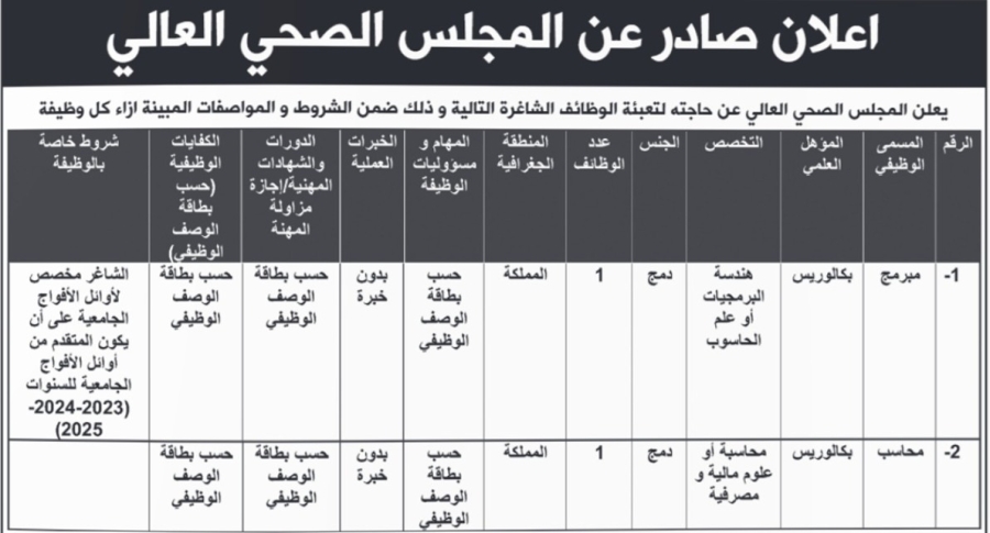 الوقائع الإخباري -اعلنت دوائر حكومية ، اليوم الاحد عن حاجتها لتعبئة وظائف شاغرة.