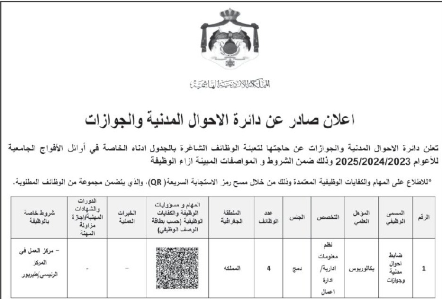 الوقائع الإخباري - أعلنت عدة دوائر حكومية، اليوم الاثنين، عن حاجتها لتعبئة وظائف شاغرة ضمن مؤسساتها.