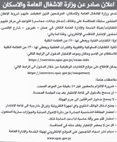 هذا، ودعت مؤسسات حكومية المرشحين الذين انطبقت عليهم شروط الاعلان المنشور سابقا للامتحان التنافسي.