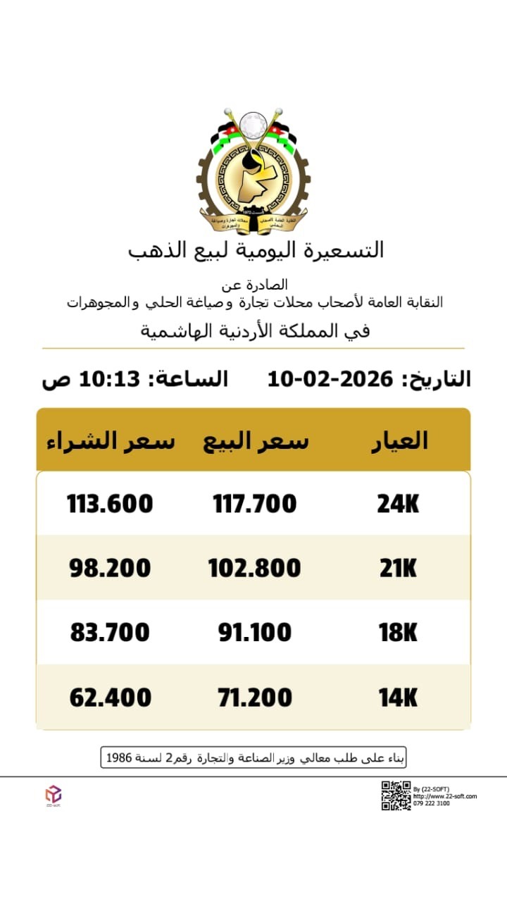 وبلغ سعر غرام الذهب عيار 21، الذي يعد الأكثر تداولًا بين المواطنين، 102.8 دينارًا.
