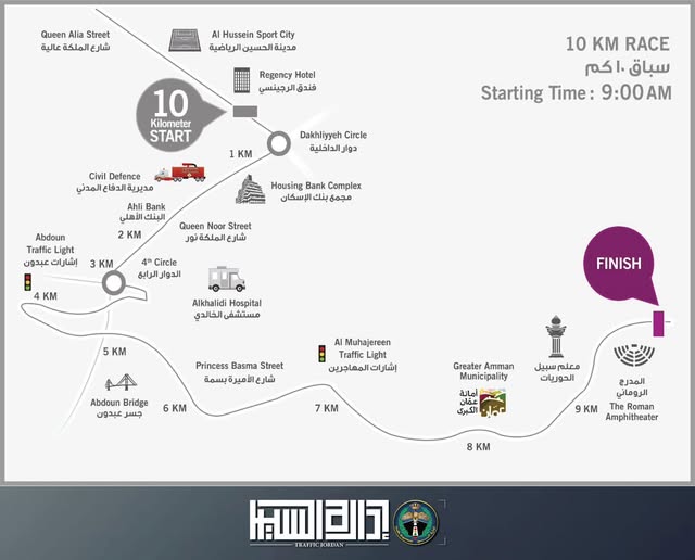 • إدارة السير تعلن خطة إغلاقات وتحويلات مرورية في عمّان خلال "برومين ماراثون" الجمعة
