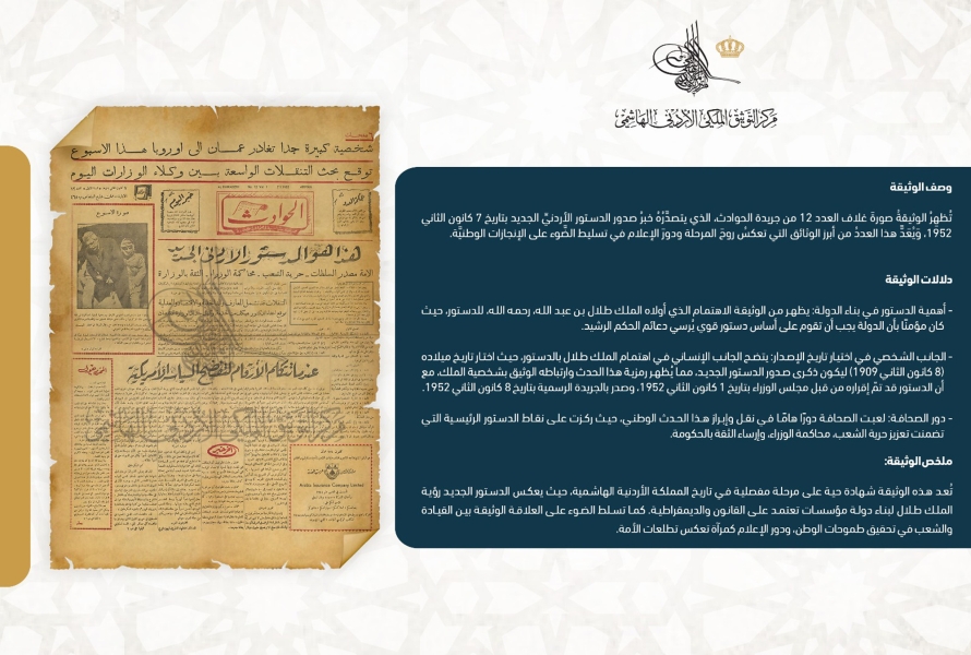 • التوثيق الملكي يعرض وثيقة حول صدور الدستور الجديد