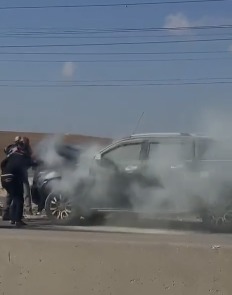 الدوريات الخارجية تخمد حريق مركبة على طريق الممر التنموي باتجاه عمّان