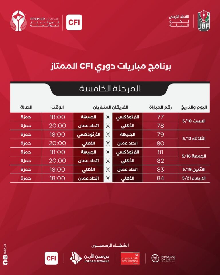 • إصدار جدول المرحلة النهائية من دوري CFI الممتاز للرجال بكرة السلة