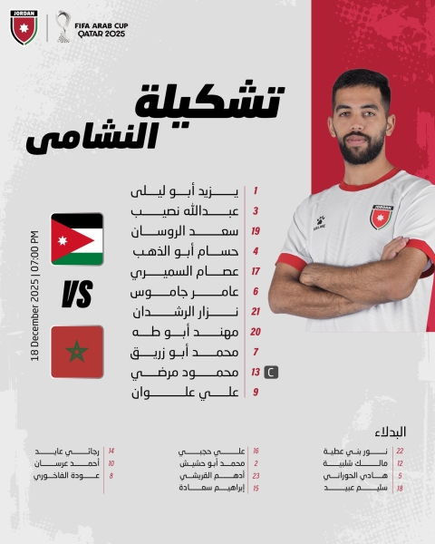 • اللجنة المنظمة لكأس العرب: موعد مباراة الأردن والمغرب في موعدها