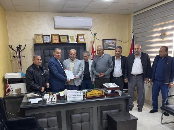 العواملة يسلم بلدية الشونة مستند الالتزام المالي بقيمة 200 ألف دينار لإنشاء قاعة عامة