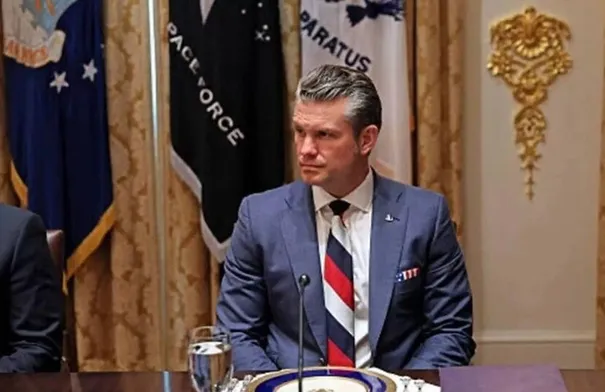 وزير الحرب الأمريكي يحضر لقاء ترامب وزيلينسكي مرتديا ربطة عنق بألوان العلم الروسي