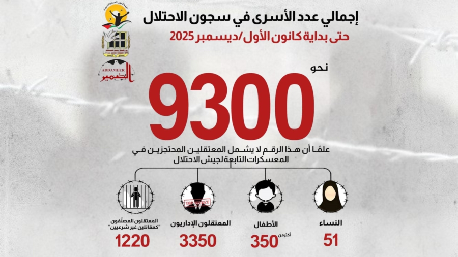 9300 أسير ومعتقل فلسطيني في سجون الاحتلال الاسرائيلي