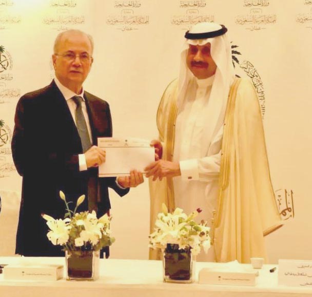 • السفير السعودي يسلم رئيس الوزراء الفلسطيني دعما ماليا لمعالجة الوضع الإنساني بغزة