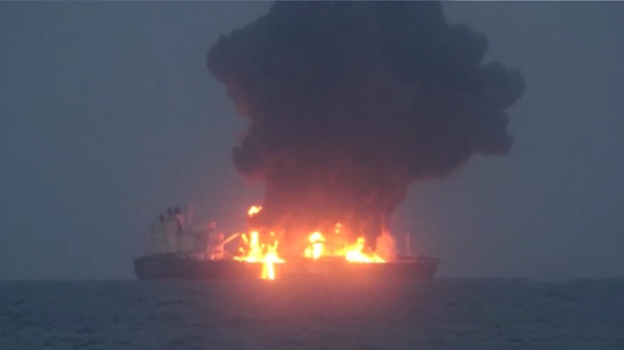• جنوح سفينة ترفع علم هولندا واشتعال حريق بها بعد هجوم في خليج عدن