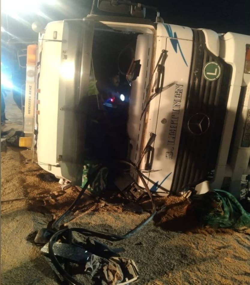 • إصابة شخصين بتدهور شاحنة على أوتوستراد المفرق – الزرقاء