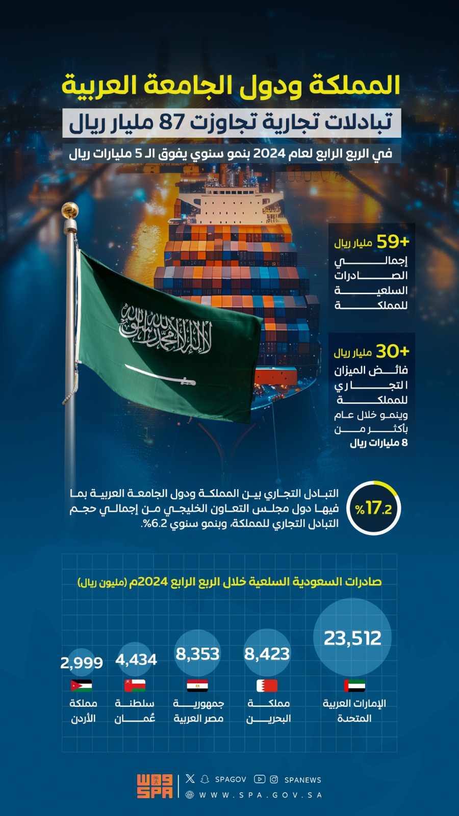 • تقرير : السعودية تعزز شراكاتها التجارية مع دول الجامعة العربية