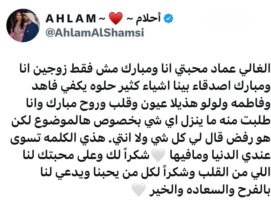 بعد أخبار الطلاق... أحلام: أنا ومبارك الهاجري أصدقاء