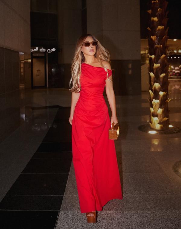 • إطلالة نجوى كرم في عيد الميلاد: فستان أحمر ونظارات شمسية