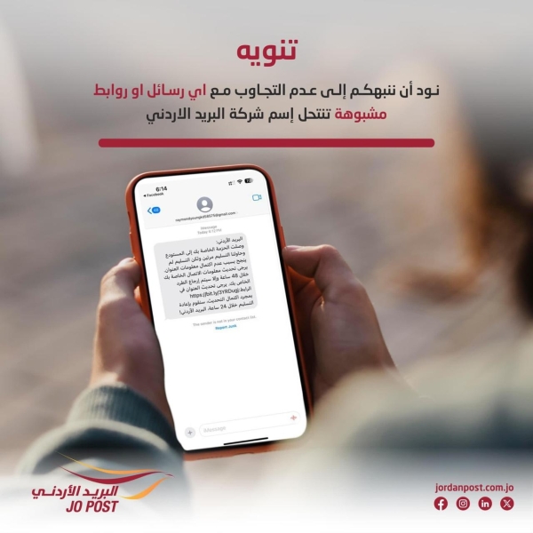 البريد الأردني يحذر من رسائل احتيالية تدعي نقص معلومات التسليم