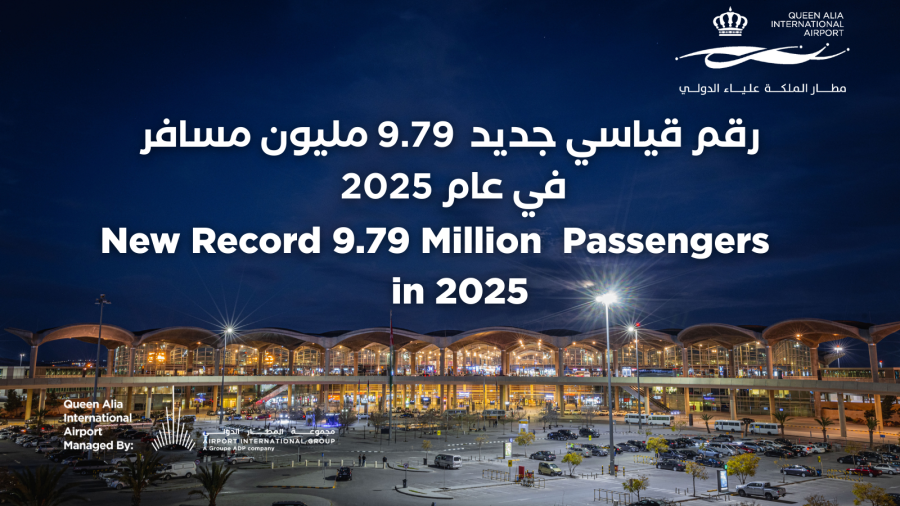• مجموعة المطار الدولي تعلن عن عام قياسي مع استقبال مطار الملكة علياء الدولي 9.79 مليون مسافر في عام 2025