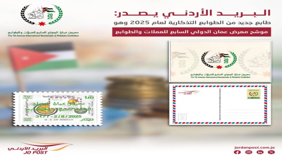 • البريد الأردني يطرح طوابع تذكارية بعنوان "موشح معرض عمان الدولي السابع للعملات والطوابع"