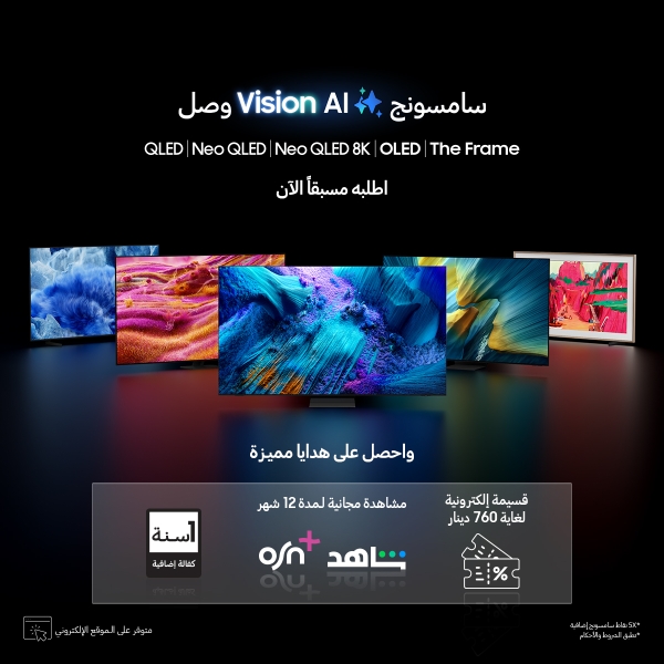 • "سامسونج إلكترونيكس" المشرق العربي تطلق حملة الطلب المسبق على تشكيلة 2025 من أجهزة التلفاز Vision AI مع هدايا استثنائية ومكافآت مميزة