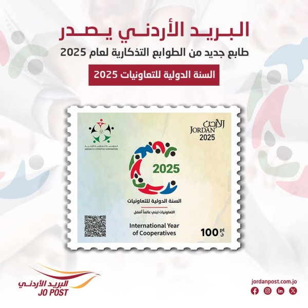 • البريد الأردني يصدر طابعًا تذكاريًا جديدًا بمناسبة "السنة الدولية للتعاونيات"
