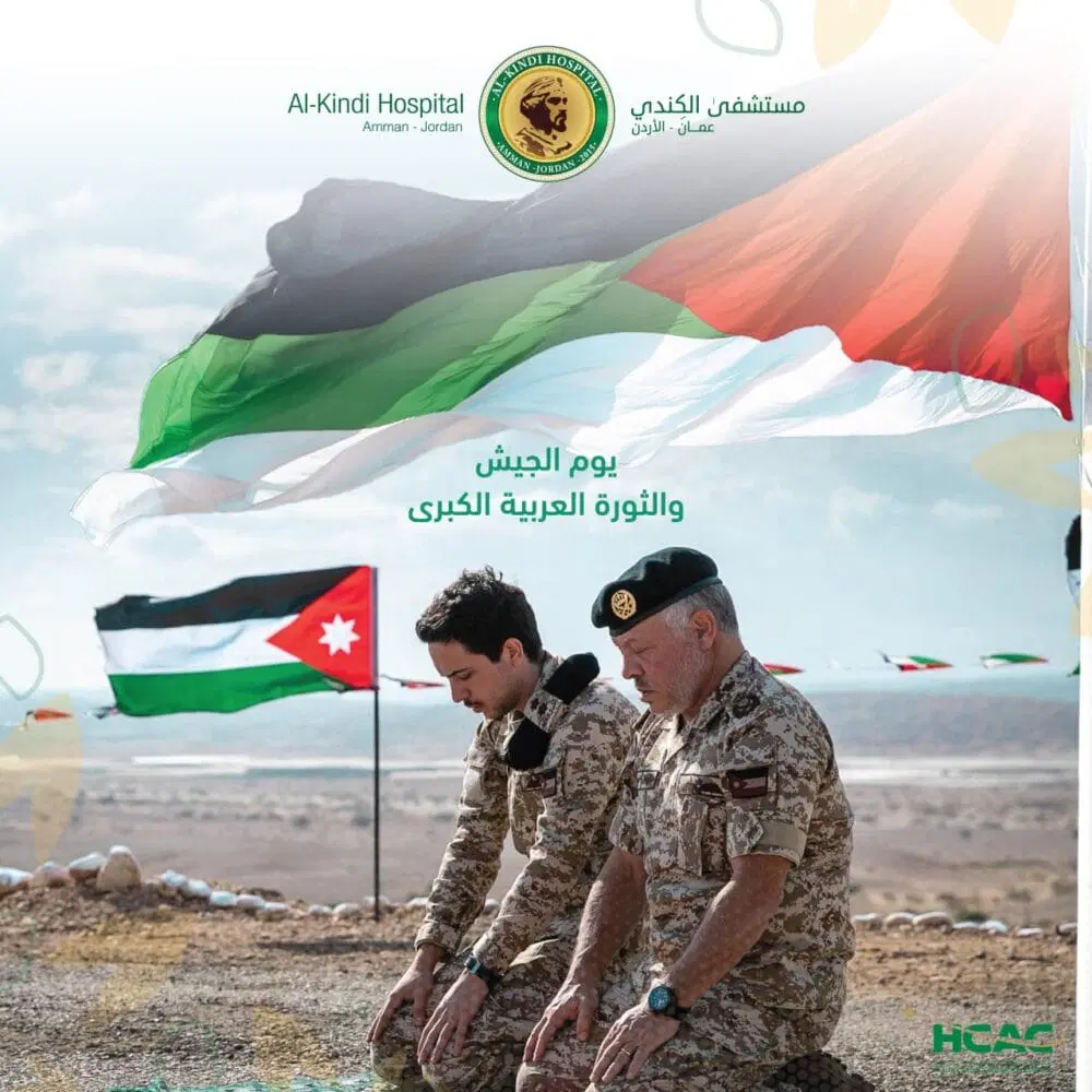 • مستشفى الكندي يهنئ جلالة الملك بعيد الجلوس الملكي وذكرى الثورة العربية الكبرى ويوم الجيش