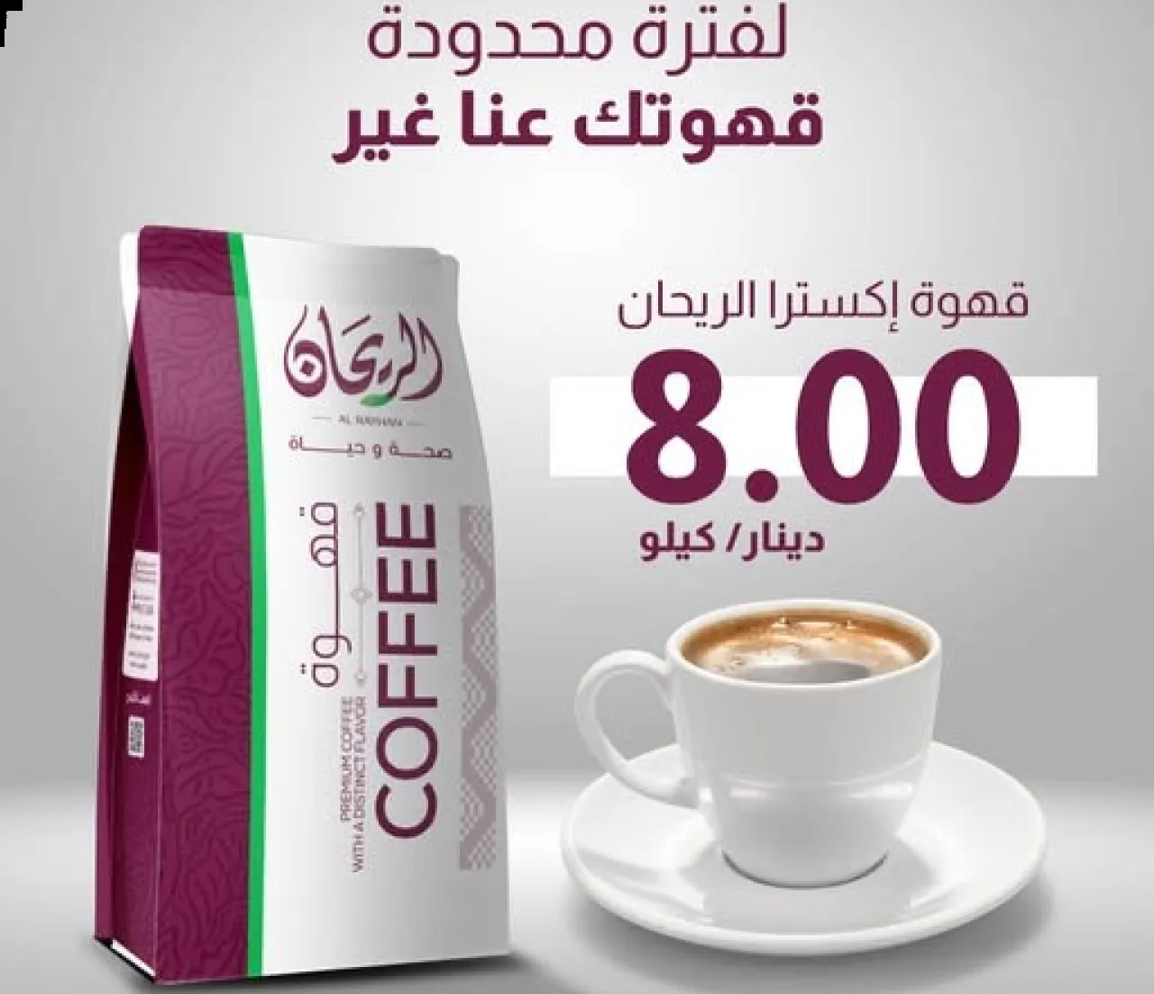 • كلغم قهوة الريحان بـ 8 دنانير بمناسبة يوم العلم