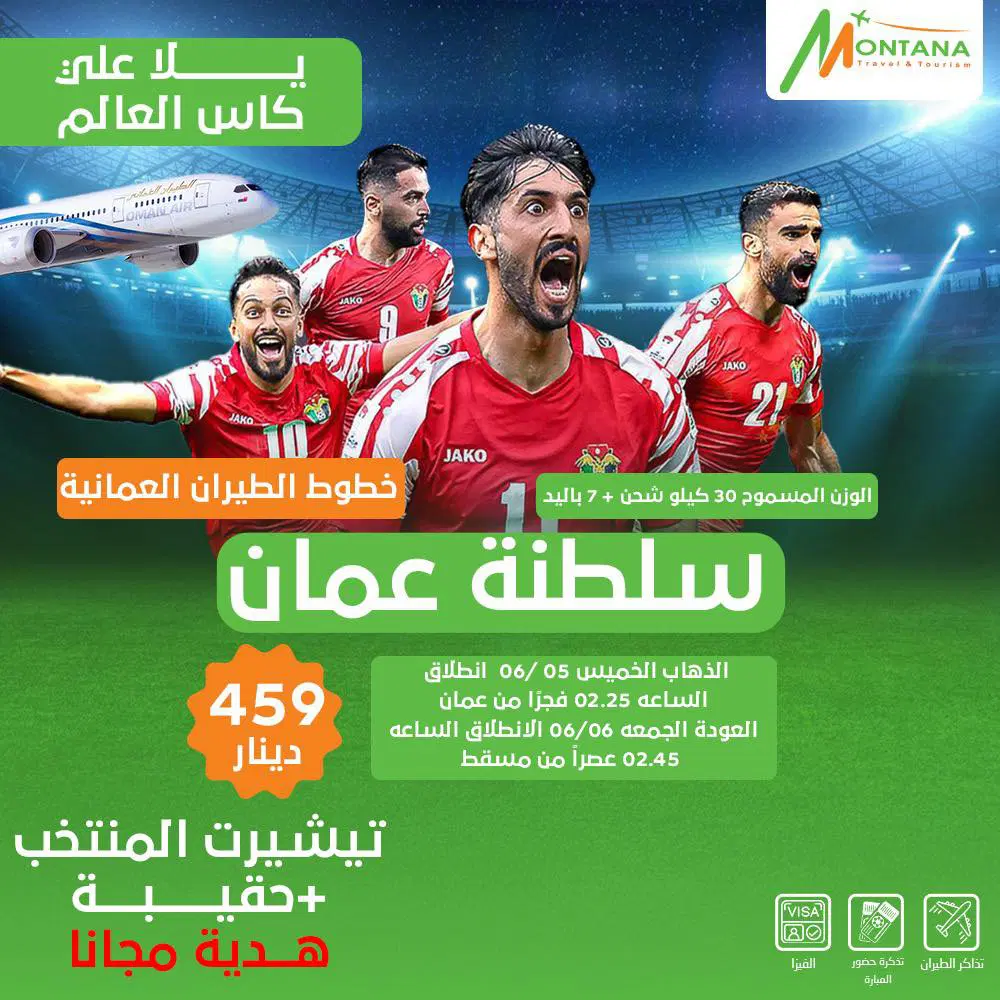 • مونتانا والنشامى والموعد في عُمان .. عرض السفر الافضل لمؤازرة منتخبنا الوطني