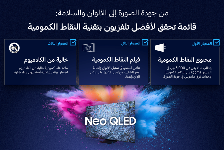 • تقنية عرض النقاط الكمومية من سامسونج تحصل على اعتماد "خالية من الكادميوم" وشهادة SGS
