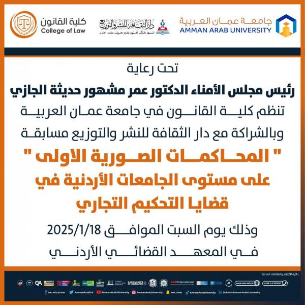 • مسابقة المحاكمات الصورية في قضايا التحكيم التجاري: تعزيز المعرفة القانونية وتطوير المهارات العملية لطلبة القانون في الأردن