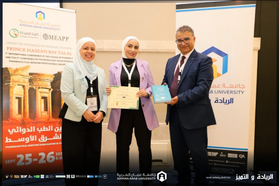 • جائزة أفضل بوستر علمي في المؤتمر الدولي الأول لكلية الصيدلة في "عمان العربية" من نصيب نسيبة القطيش