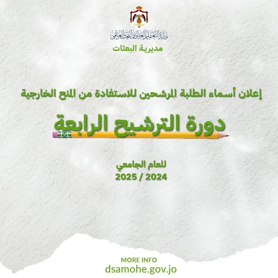 • إعلان نتائج ترشيح الدورة الخامسة للمنح الخارجية للعام الجامعي 2024-2025