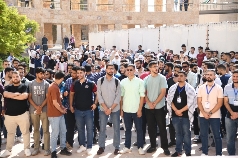 • وقفة تضامنية حاشدة في جامعة العلوم والتكنولوجيا نصرة لصمود أهلنا في غزة