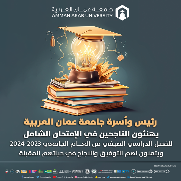 • رئيس وأسرة جامعة عمان العربية يهنئون الناجحين في الامتحان الشامل