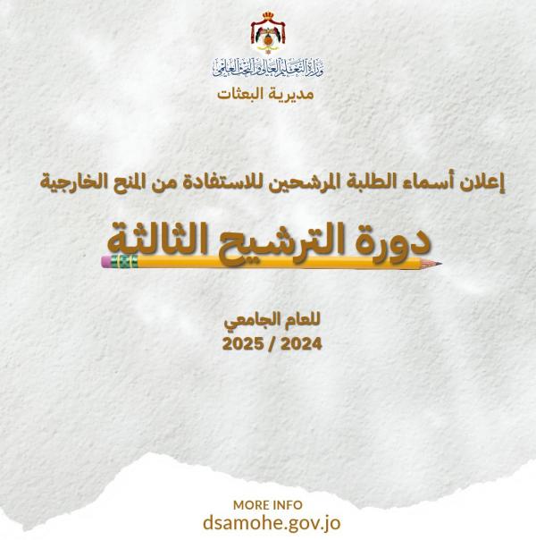• إعلان نتائج الدفعة الثالثة للحاصلين على منح جامعية خارجية (رابط)