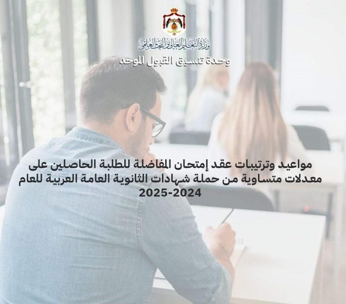 • موعد امتحان المفاضلة للطلبة الأردنيين المتساوين بالمعدل
