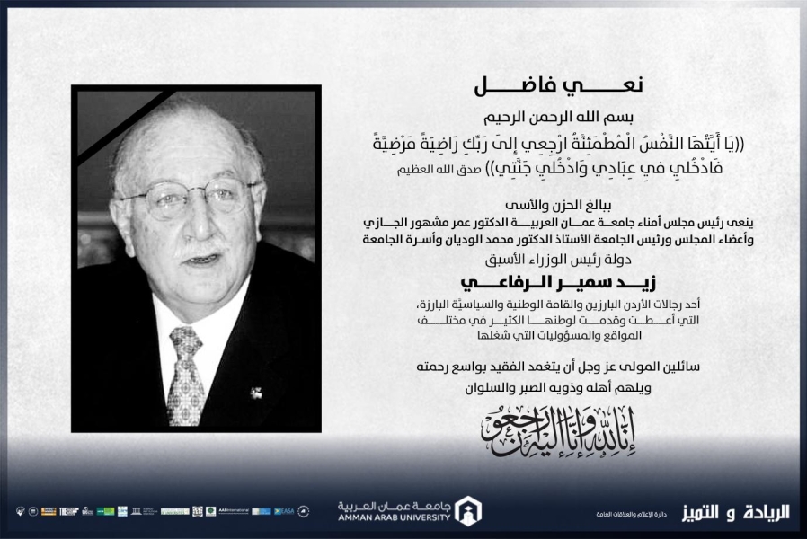 • عمان الأهلية تهنئ أ.د. الدبعي بتجديد تعيينه أميناً عاماً لوزارة التعليم العالي