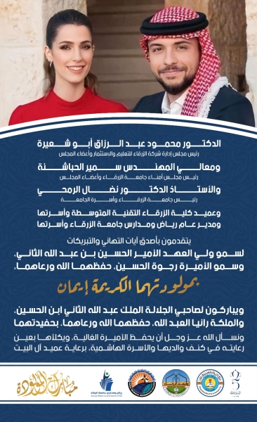 • أسرة جامعة الزرقاء تهنئ بقدوم الأميرة إيمان بنت الحسين