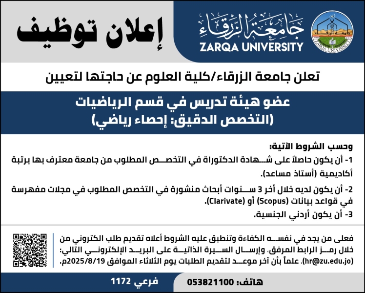 • وظيفة شاغرة في جامعة الزرقاء
