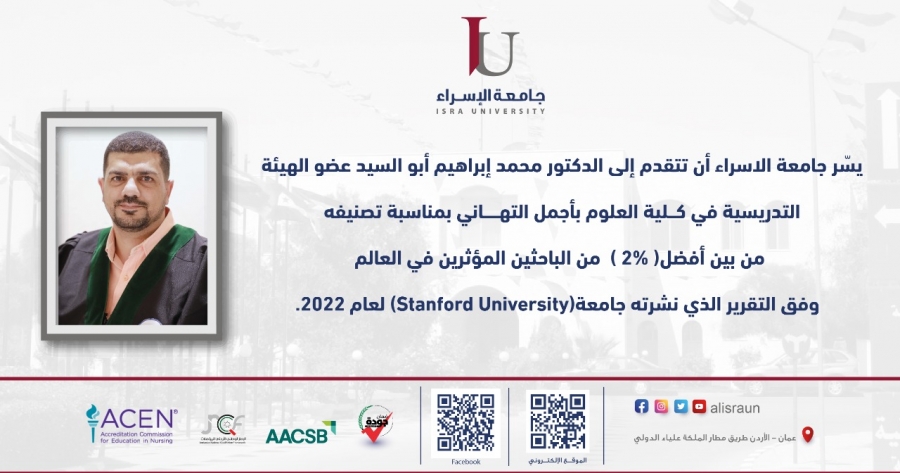 • جامعة الإسراء تهنئ الدكتور محمد إبراهيم أبو السيد