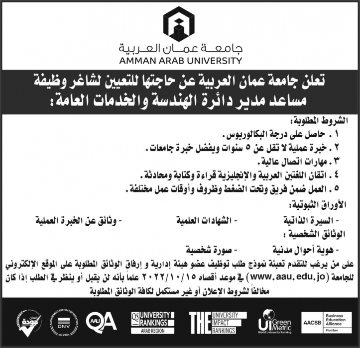 • اعلان توظيف في جامعة عمان العربية