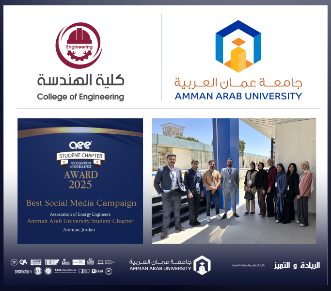 • طلبة "عمان العربية" يحصدون جائزة "أفضل حملة على وسائل التواصل الاجتماعي" عالمياً من جمعية مهندسي الطاقة (AEE)