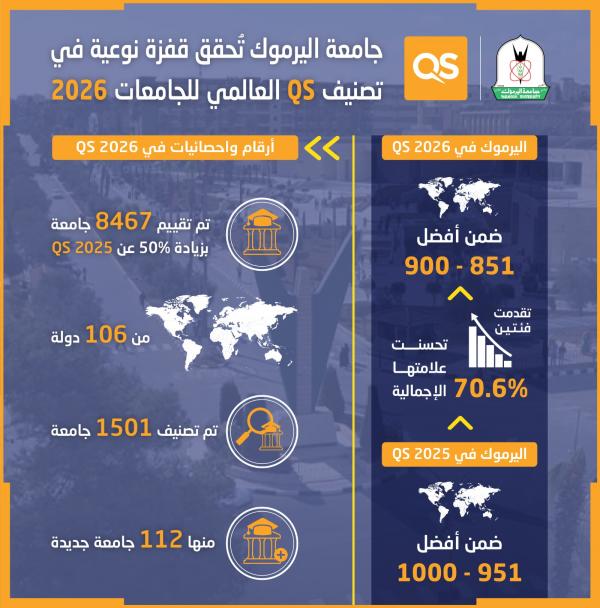 • اليرموك تتقدم في فئتين في تصنيف QS العالمي للجامعات 2026