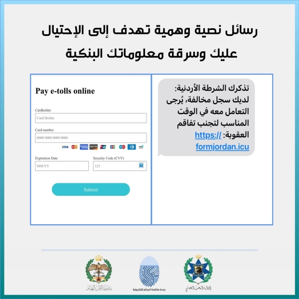 الأمن العام يحذّر من رابط احتيالي بشأن المخالفات المرورية (صورة )