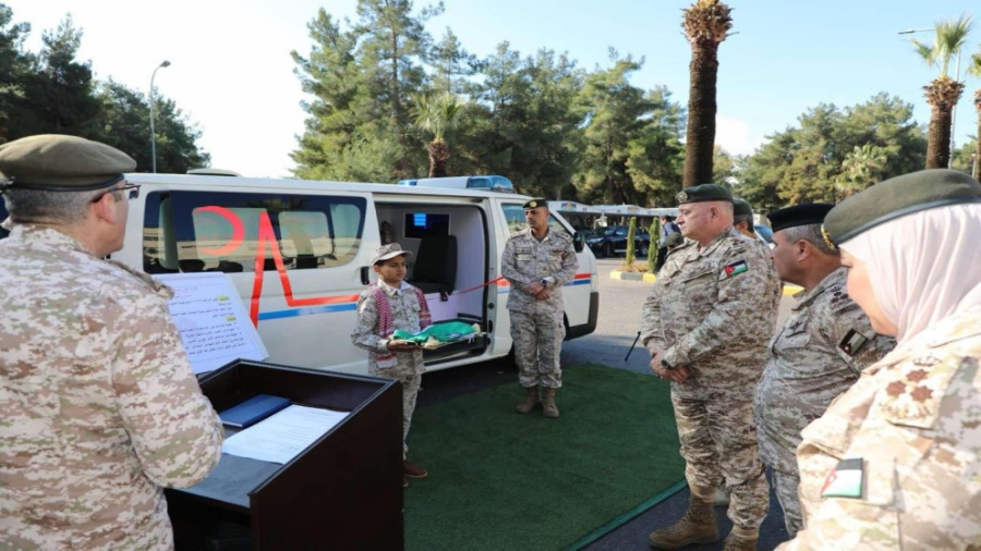 المدير العام للخدمات الطبية الملكية يتفقد تجهيز آلية إسعاف في مدينة الحسين الطبية