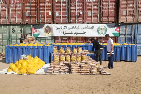 • المستشفى الميداني الأردني جنوب غزة يوزع 1600 طرد غذائي