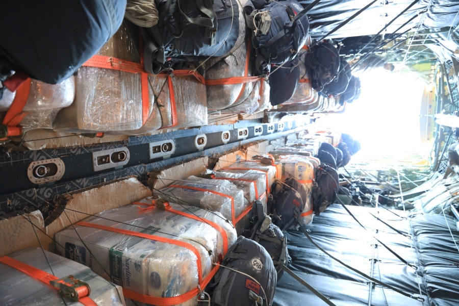 • القوات المسلحة تنفذ إنزالا جويا لمساعدات إنسانية جنوب قطاع غزة