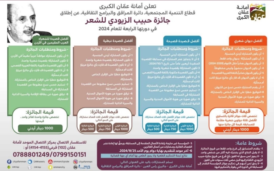 • أمانة عمان تطلق جائزة حبيب الزيودي للشعر