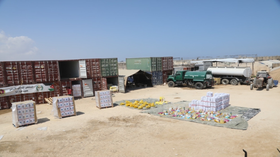 • المستشفى الميداني الأردني جنوب غزة/7 يوزع مساعدات غذائية لأهالي القطاع