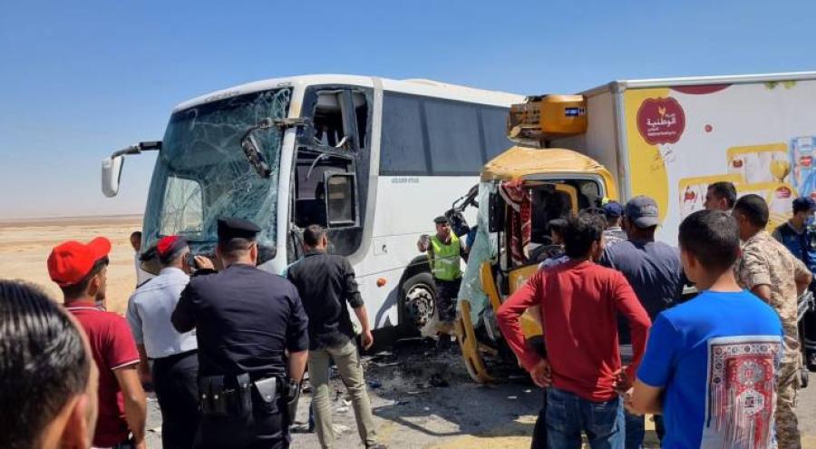• وفاتان و7 إصابات بتصادم مركبة وحافلة على الطريق الصحراوي في معان