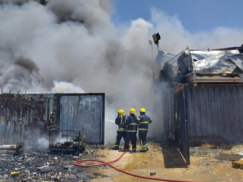 • الدفاع المدني يبذل جهوداً كبيرة مكنته من إخماد حريق مستودع يعود لمؤسسة تجارية بمحافظة العاصمة