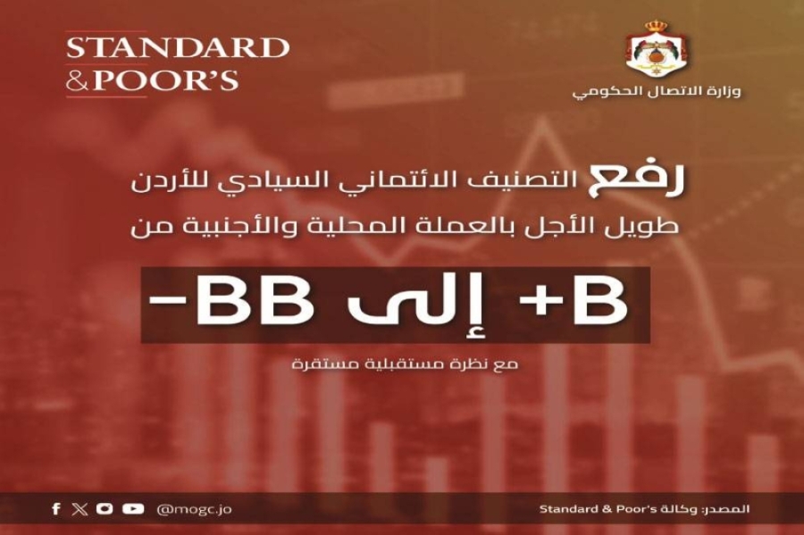 • صناعة الأردن: تصنيف ستاندرد اند بورز يدعم أداء الاقتصاد الوطني